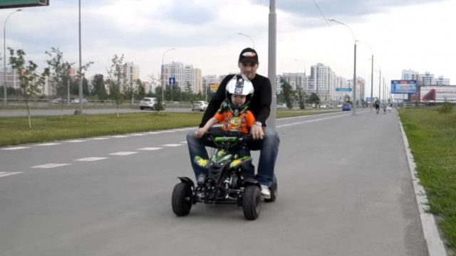 Отлично подойдёт детям от 3 до 7 лет. Квадрик оборудован компактным двухтактным бензиновым двигателем в паре с фрикционным сцеплением центробежного типа