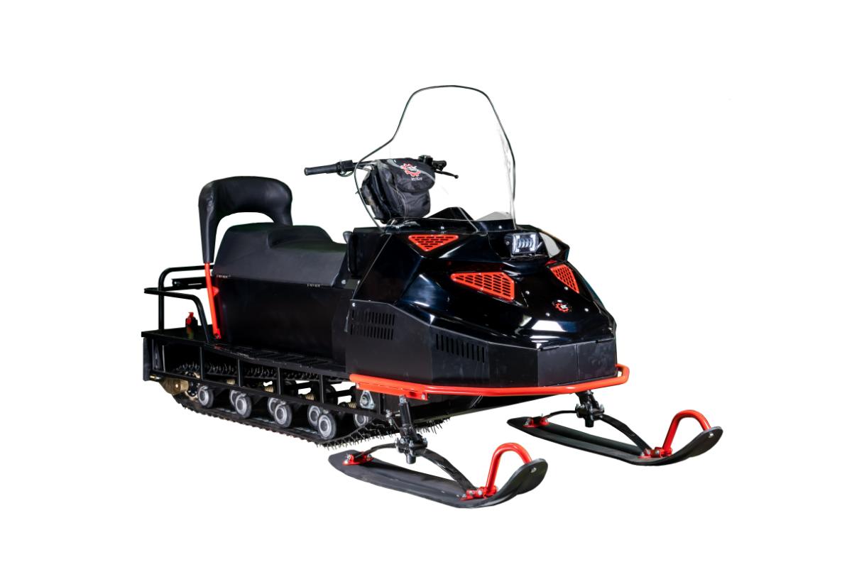 Утилитарный одногусеничный снегоход в длинной базе 2900 мм с двумя лыжами и эргономичным сиденьем со спинкой.