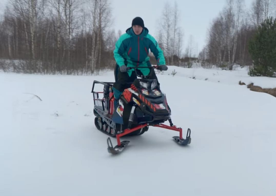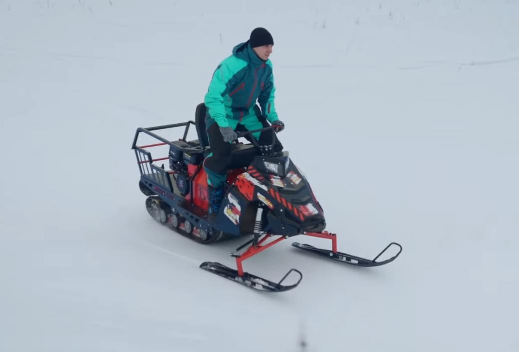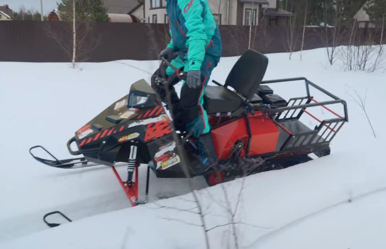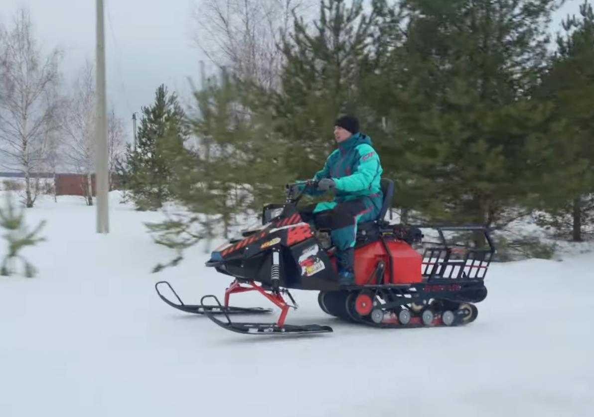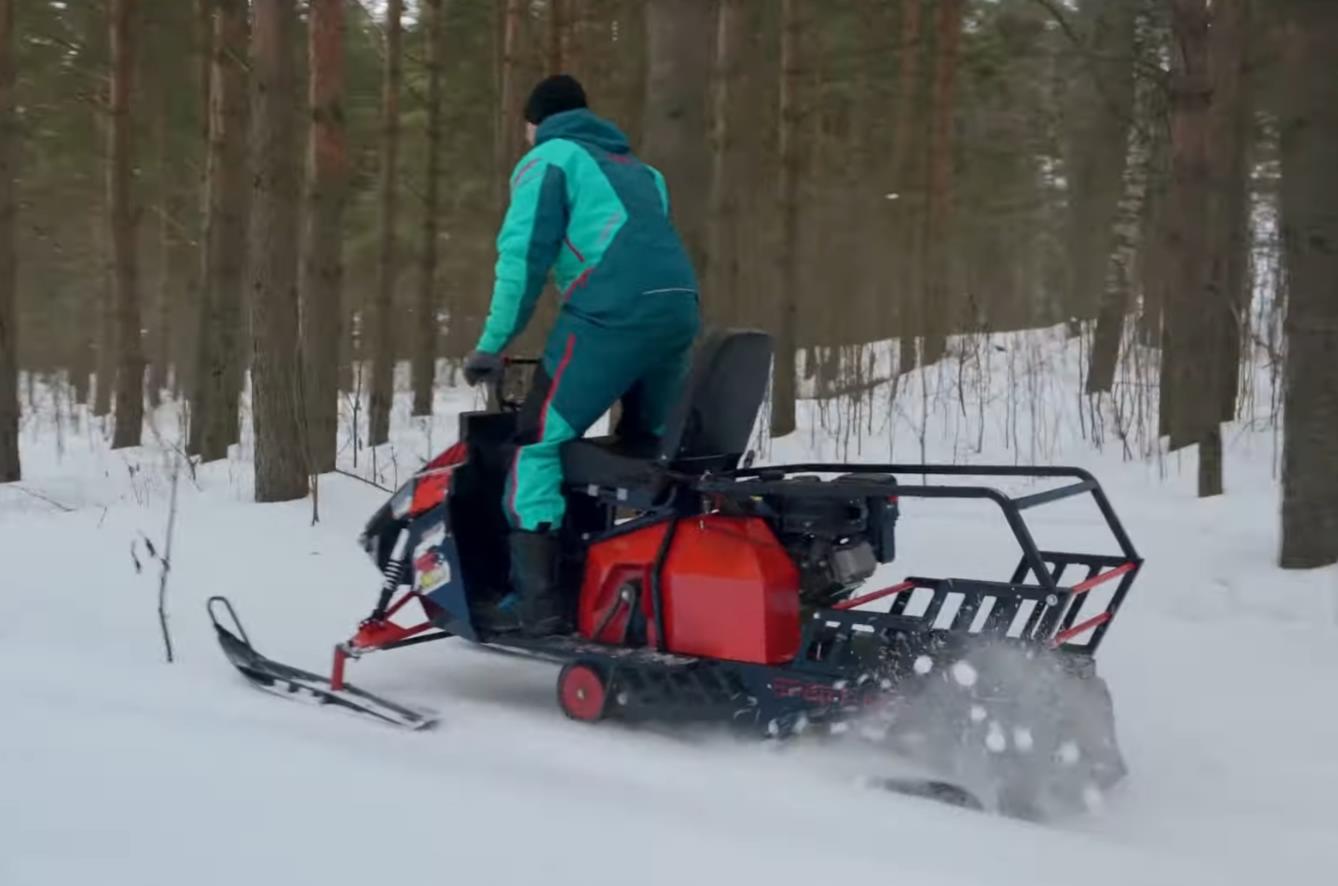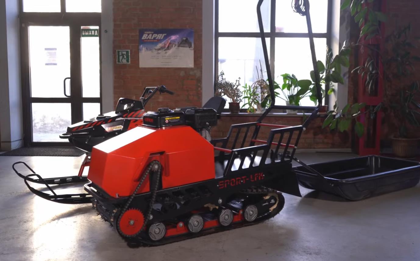 На мотобуксировщике установлена гусеница шириной 500 мм и длиной 2828 мм.
