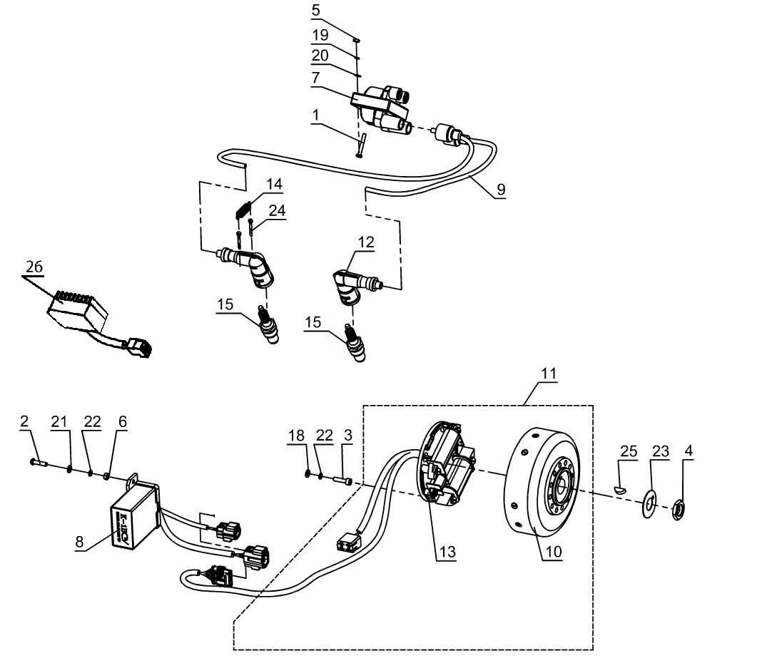 | Маховик со статором в сборе 110900520 | 0053634 | ||||