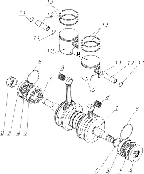 Вал коленчатый, поршни для снегохода Буран Лидер